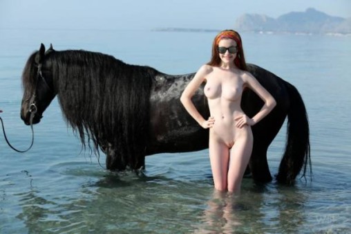 Молодой поклонник животные Emily в эротической фотосессии, верхом на черном жеребце. Красивая девушка с красивым телом полностью обнаженных роль лошади, не забывая позировать фотографу. Смотрим и получаем удовольствие…