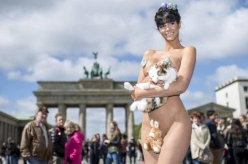 Немецкая топ-модель Микаэла Шефер в очередной раз публично продемонстрировал свое обнаженное тело. Девушка появилась у знаменитых Бранденбургских ворот совершенно голый, с плюшевым кроликом половых органов и крашеными яйцами…